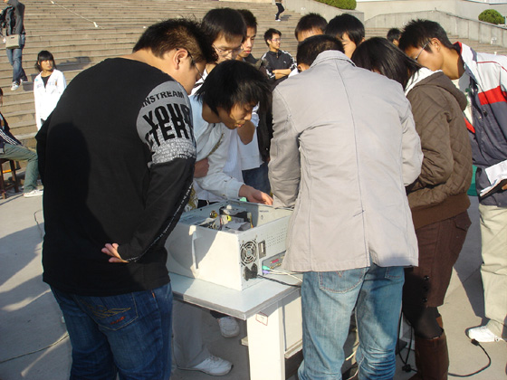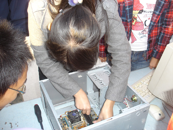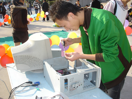 装机大赛是我系举办的首届IT文化节的项目之一。在11月25日的初赛中,12位优秀参赛者脱颖而出,11月28日下午2:00,装机大赛决赛在信息楼前进行。