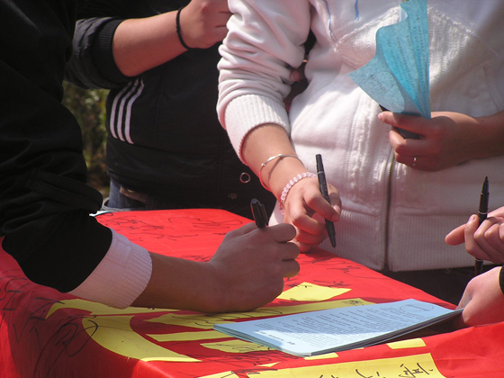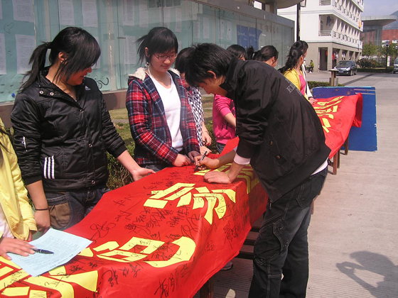 我系举行“迎绿色奥运,建设节约型校园”签名活动