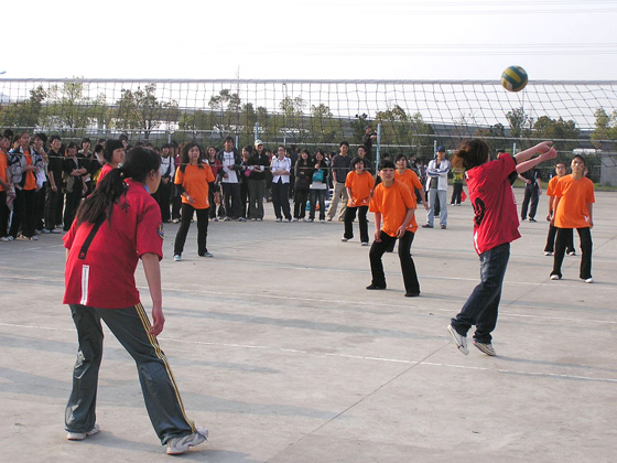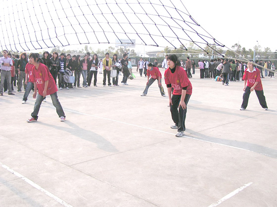 3月24日下午3点45分,我院第七届运动会女子排球赛在院排球场拉开了战幕,全院八大系各自派出选手参赛,八大系分成四组分别进行对抗。