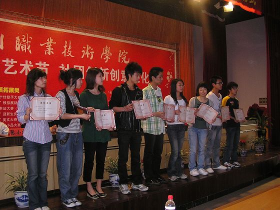 颁发完奖项后,季凌斌老师还读了有关这次文化节的相关文件。夏晓军副院长向我们致词并对这次活动作了肯定。接着学生代表宣读了倡议书,强烈地表达了我们的心声。在大家的掌声中,夏院长和季凌斌老师为大学生创业中心、大学生艺术指导中心授牌。