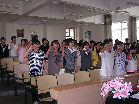 典礼在庄严的国歌声中拉开序幕。主持典礼的孙艳艳同学代表发言向学员们宣读了党校学习的章程和纪律。党校校长苏跃飞老师为学员们作了讲话,对党校开学表示祝贺,对参加党校学习的同学表示欢迎,并作了具体的学习要求,激励广大学员在工作、学习、生活中起好模范带头作用,希望同学们通过培训,全面提高对党的认识。随后苏跃飞老师对学员们分发入党培训教材。接着全体起立作入党宣誓,奏国际歌。
