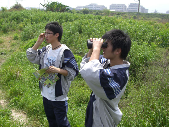 一行30余人终于在10:00左右抵达目的地。大家边听着“绿眼睛”负责人对鸟类的介绍,边拿出准备好了的望远镜四处观察着小鸟们。每个人细心地观察着、体会着,原来我们身边一直生活着这么多种类的小鸟。“绿眼睛”负责人还对大家说:“我们大家只要少说话,多看,多听,就会发现我们身边的的事物是那么的精彩!”