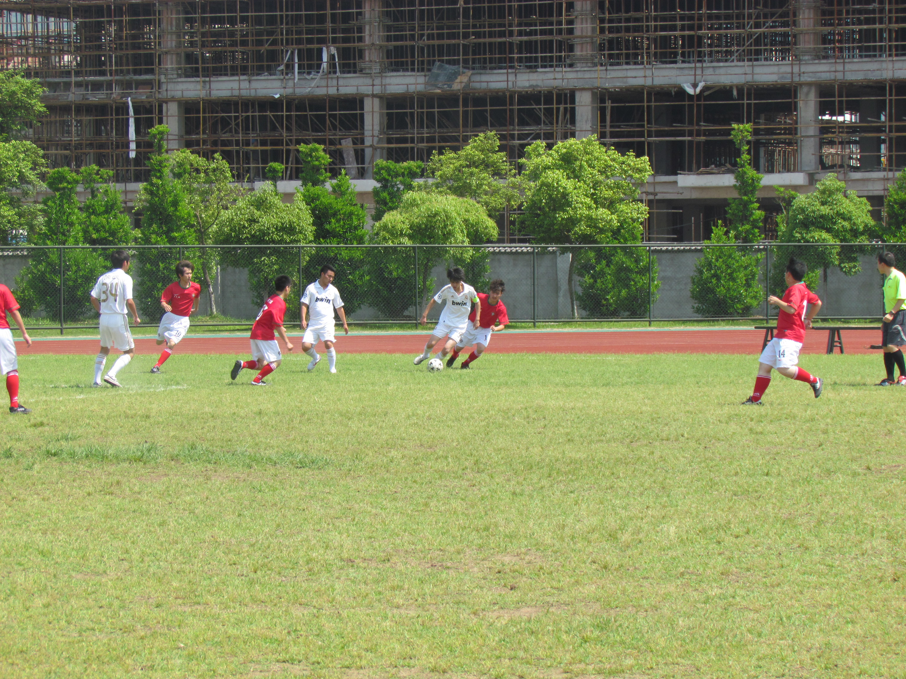 随着裁判员一声哨响,比赛正式开始。上半场一开始我系与电气系的球员立刻开始了猛烈的进攻,双方的球员们都毫不示弱,但直到上半场结束,双方仍然没有进球,以0:0战成平手。下半场开始,双方均展现出各自细腻的脚法、默契的配合、缜密的队形部署很快使比赛进入白热化阶段。我系7号球员王亮盘带娴熟,巧妙过人,射门,不负众望进了第一球,场下的气氛瞬间活跃起来,掌声雷动。场上球员的情绪也被牵动着,9号球员运用良好的球技也来了个漂亮的射门。在比赛快进入尾声的时候,我系8号球员稳重求胜,无悬念的又进了一个球。我系终以3:0的优势首战告捷。