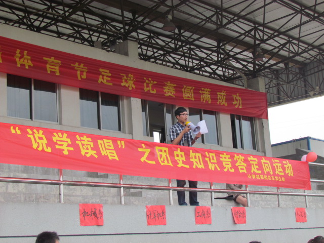 五月的花海美丽而辉煌。为了让全院学生更深刻了解团史知识,增加对团史的知识含量,由我系团总支学生会组织的温职院“说学读唱”之团史知识竞答定向运动于5月23日下午3点在操场举行。在经过近一个半小时的团队角逐后,工商系,机械系,计算机系凭借良好的团队合作位居前三。