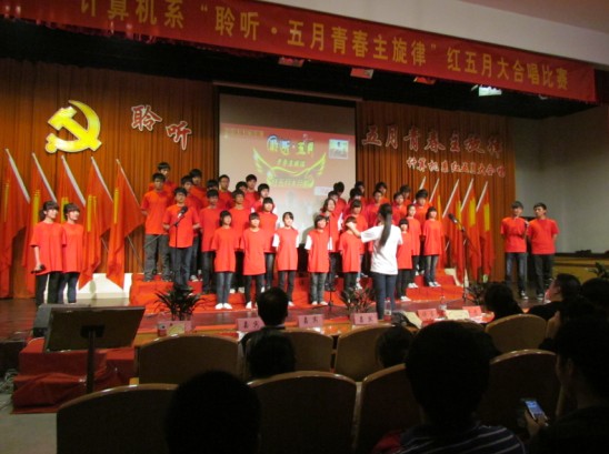 为纪念建党九十周年,计算机系于5月13日18点30分,在我院报告厅举行了以“聆听 ▪ 五月青春主旋律”为主题的红五月大合唱比赛。来自计算机系的9个班级参与本次比赛,当晚到场的嘉宾有系主