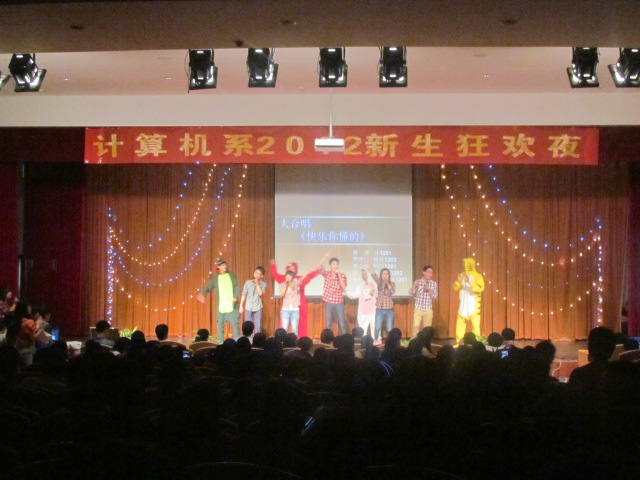 重叠人生轻喜剧,一路狂欢洒洋溢。9月27日晚18时,计算机系2012新生狂欢夜迎新晚会在报告厅隆重举办,晚会邀请到了系主任李永平老师,系党总支书记童炳金老师以及各班班主任,共有来自全系400百余名大一新生参加本次晚会,系党总支书记童炳金老师为本次晚会致词。