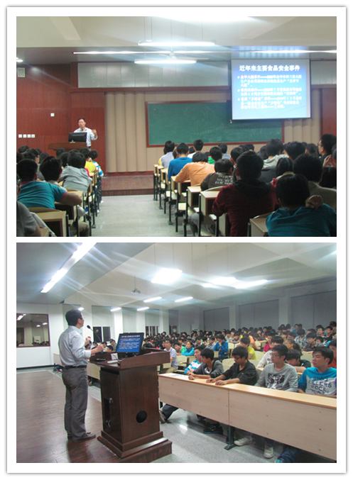 据了解,我系“三早一晚”系列讲座已经开展了两个学期,内容涉及学习、心理健康、文娱活动等等,不仅使我系三早一晚更具多样化,同时又能深入了解时事发展。期间,童书记分析了近年来的食品健康事件并以毒奶粉、苏丹红、瘦肉精等各个食品安全事件为例,希望同学们能从这些真实事例中了解食品安全的重要性。接着,童书记用一些物理常识和化学知识为同学们讲解了平时喜欢的食物中的不健康因素和危害,例如烧烤、油条、方便面等食品,让大家注意到在日常饮食上的一些误区。同时也教给了同学们一些防止危害的发生的方法。最后,童书记利用《中国膳食指南》指导同学们怎样才能合理且有营养的进食,并列出了合理营养的四大点,所谓的合理营养就是合理制定食谱,膳食卫生安全,合理加工烹调,合理膳食制度。