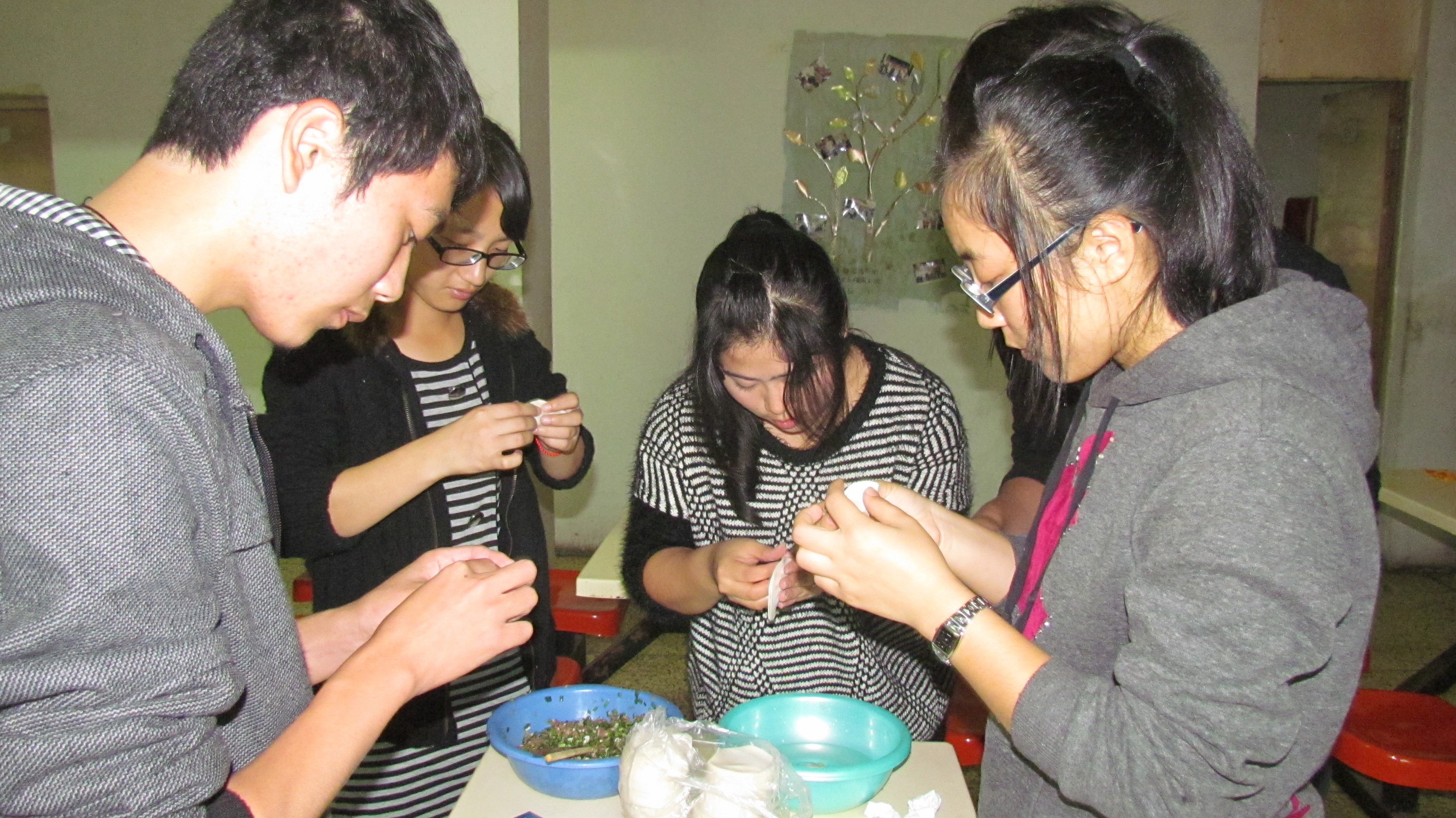 志愿者们怀着诚挚的心,冒着大雨,带着慰问品徒步来到了敬老院,老人们都热情的迎接志愿者们的到来。他们的到来使原本寂寞的敬老院充满了笑声。志愿者们分成了若干个小组,各个小组都有分工。有的陪老人拉拉家常,讲讲养生知识,还不忘给老人捶捶背;有的端着水果到各个楼层的房间,给那些不方便下楼的老人也送去欢笑;有的志愿者围在一起为老人们包饺子;还有的冒着小雨在院子里打扫。敬老院的老人为表感谢还亲自拉起了二胡,志愿者们围坐一旁唱着《南泥湾》、《茉莉花》等歌曲,敬老院内呈现出了一幅温馨的场面。