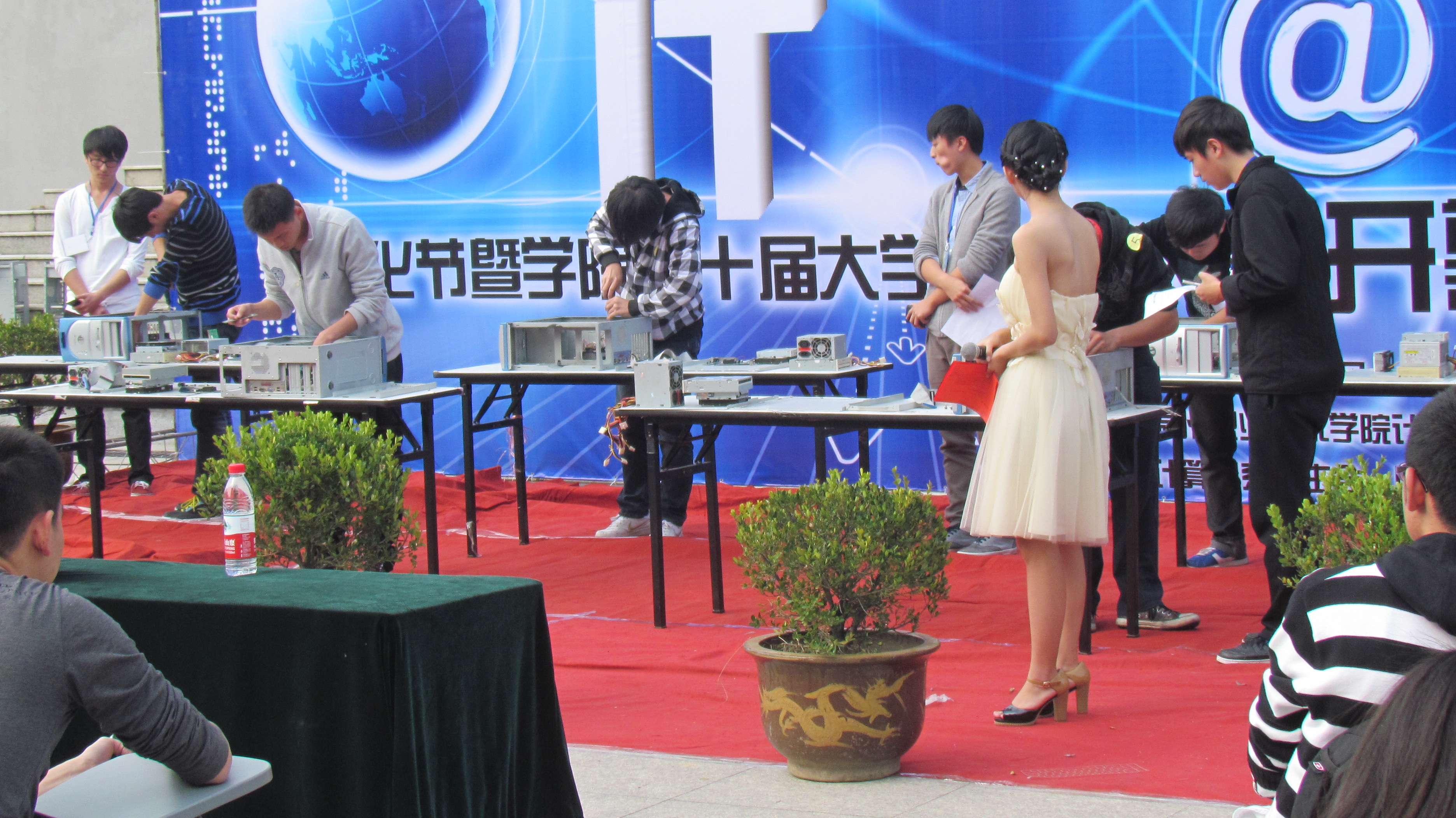 随后,陈博的一首《谢谢侬》和吴亮海的电吉他演奏《我相信》,HOLD住全场的表演使全体师生热情高涨。接下来大学生技能大赛之“装机王”大赛把开幕式推向了高潮。10位IT达人纷纷各显才华,比赛异常的激烈,也使观众们的激情高涨。充分展现了计算机系IT人积极向上的精神。最后在热烈的掌声中,计算机系第六届IT文化节暨第十届大学生技能大赛开幕式圆满结束。