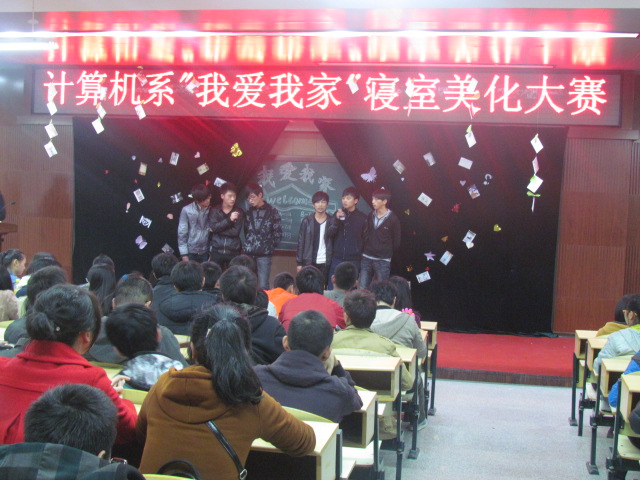 12月3号,计算机系在2-101教室举行了“我爱我家”寝室美化大赛总决赛暨颁奖典礼,我系辅导员黄立强和徐莎老师,学生会主席团担任评委,比赛还特设16位大众评委,由系团学组织干部担任。