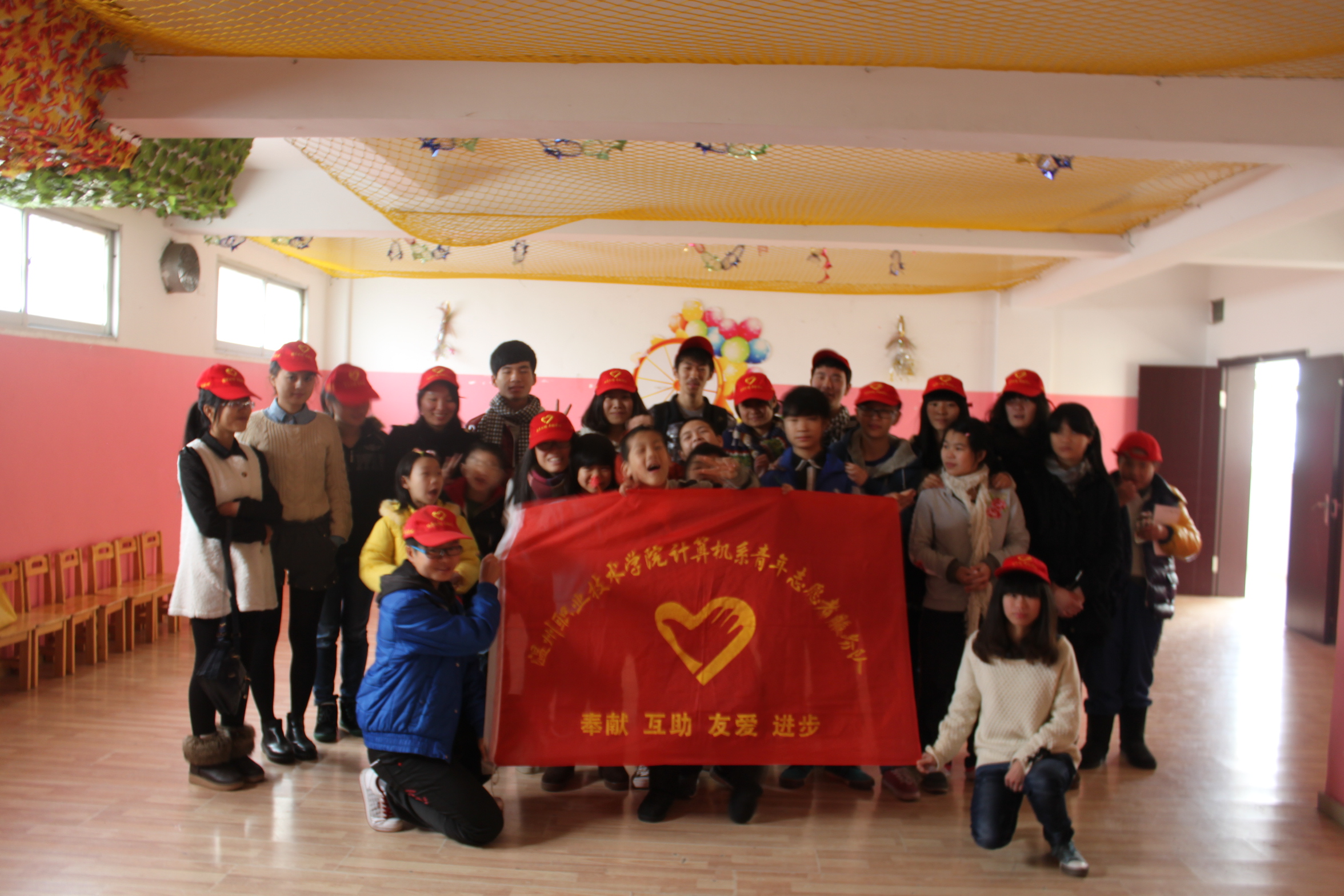 12月8日,计算机系20名志愿者到市区杨府山救助站,在寒冷的冬日里给那里的孩子们送温暖,献爱心。