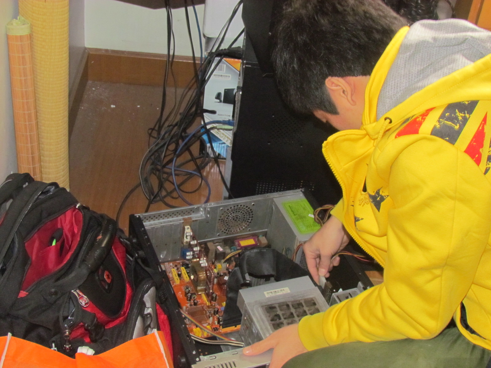 为了弘扬2012年12月5日国际志愿者日的节日精神,12月8日,计算机系社工部与人文系社工部共同举办了“温情融入社区,服务关怀各家”的免费维修电脑活动。