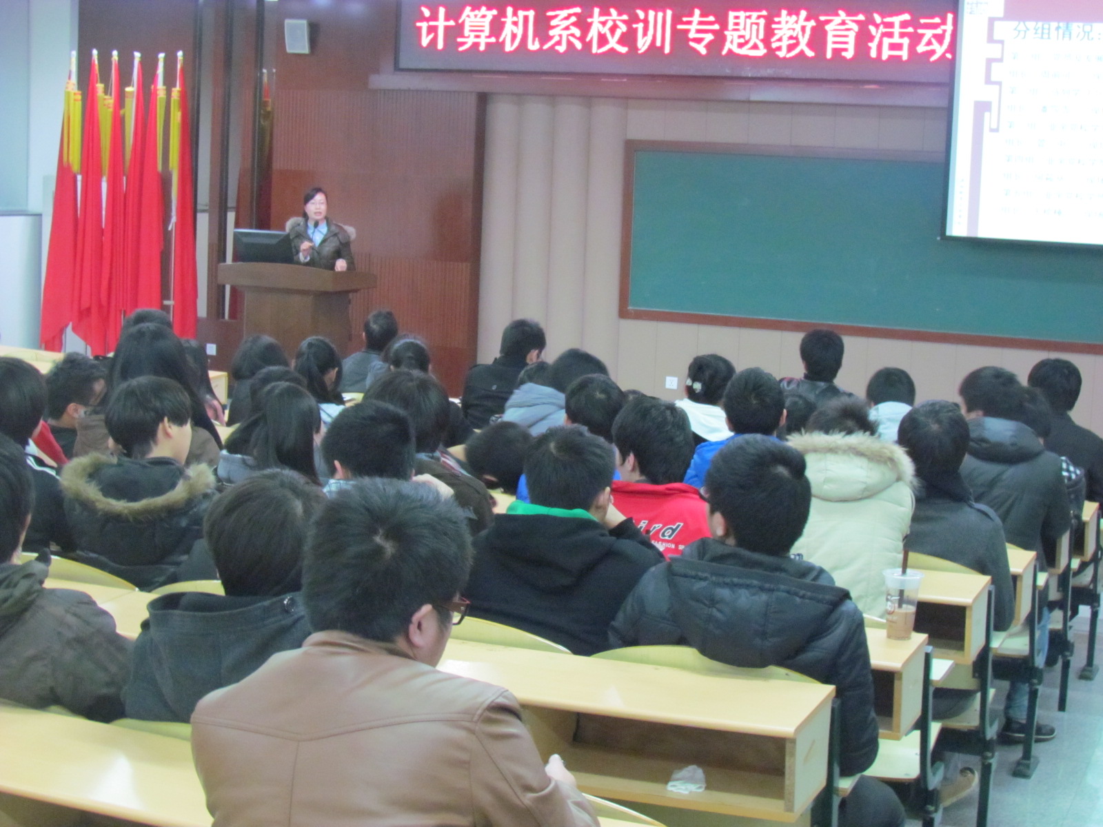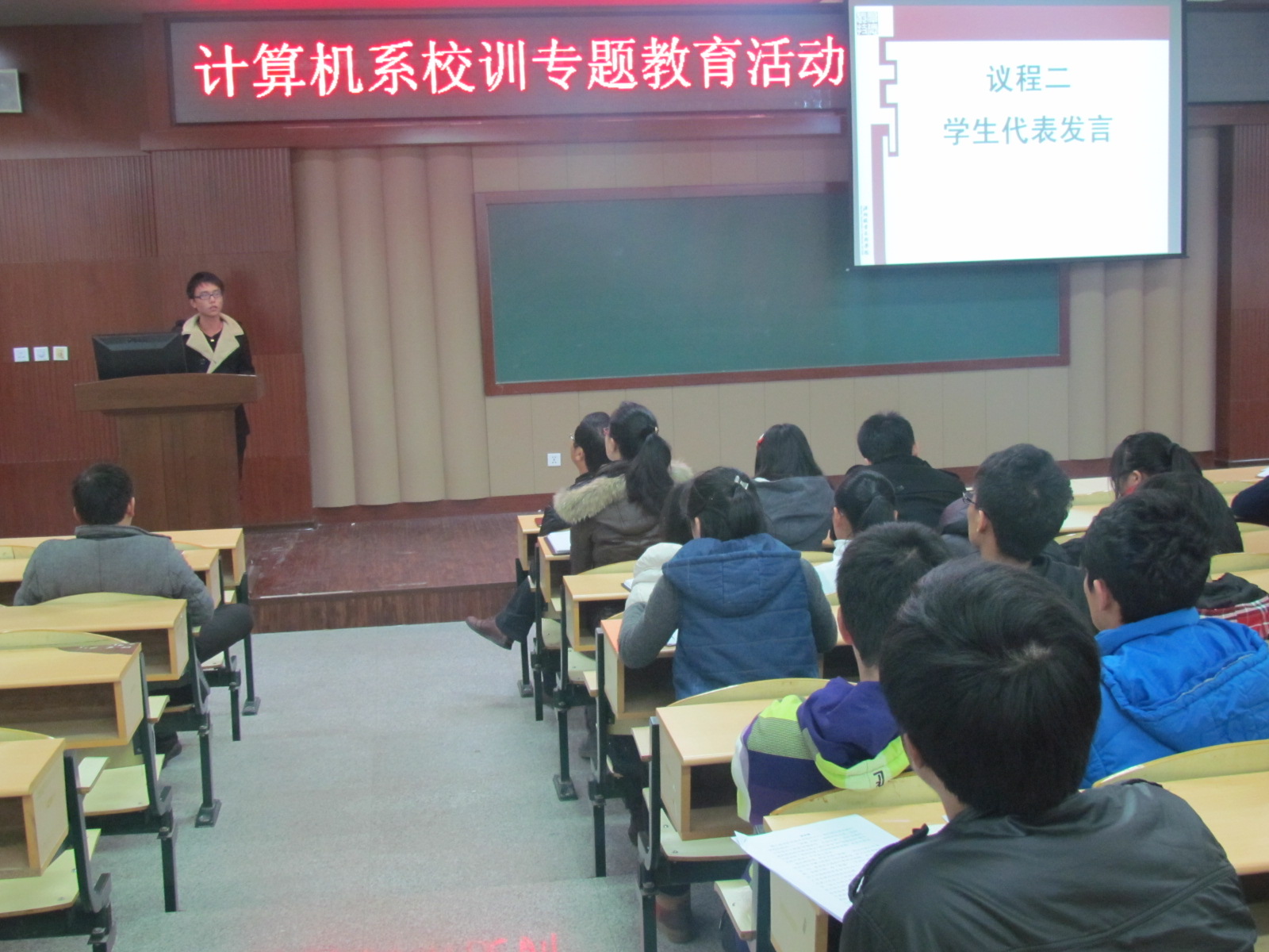 为了凝炼温职精神,为了建设“承袭传统、积淀精神、价值凝练、风格独具”的精神文化,让同学们更深刻地学习和理解校训校标的内涵,12月19日晚,计算机系在2-101教室举办了“校训专题教育”活动。系党总支书记童炳金、系辅导员罗小阳,李文静,徐莎,黄立强老师参加了本次活动。
