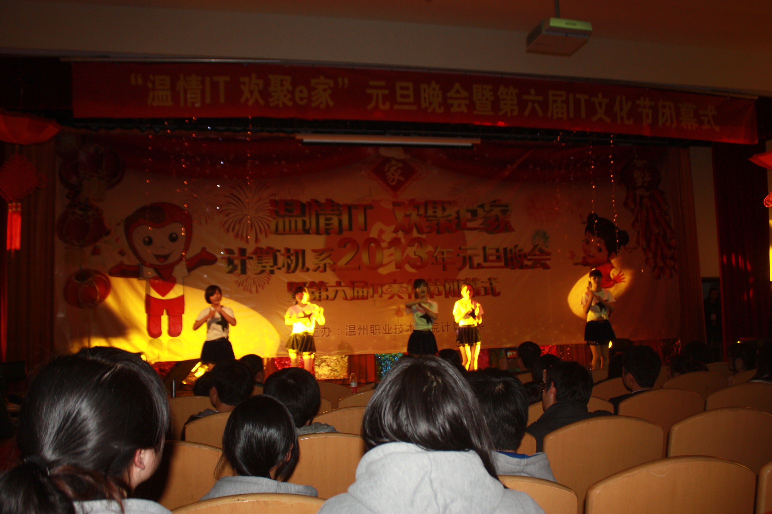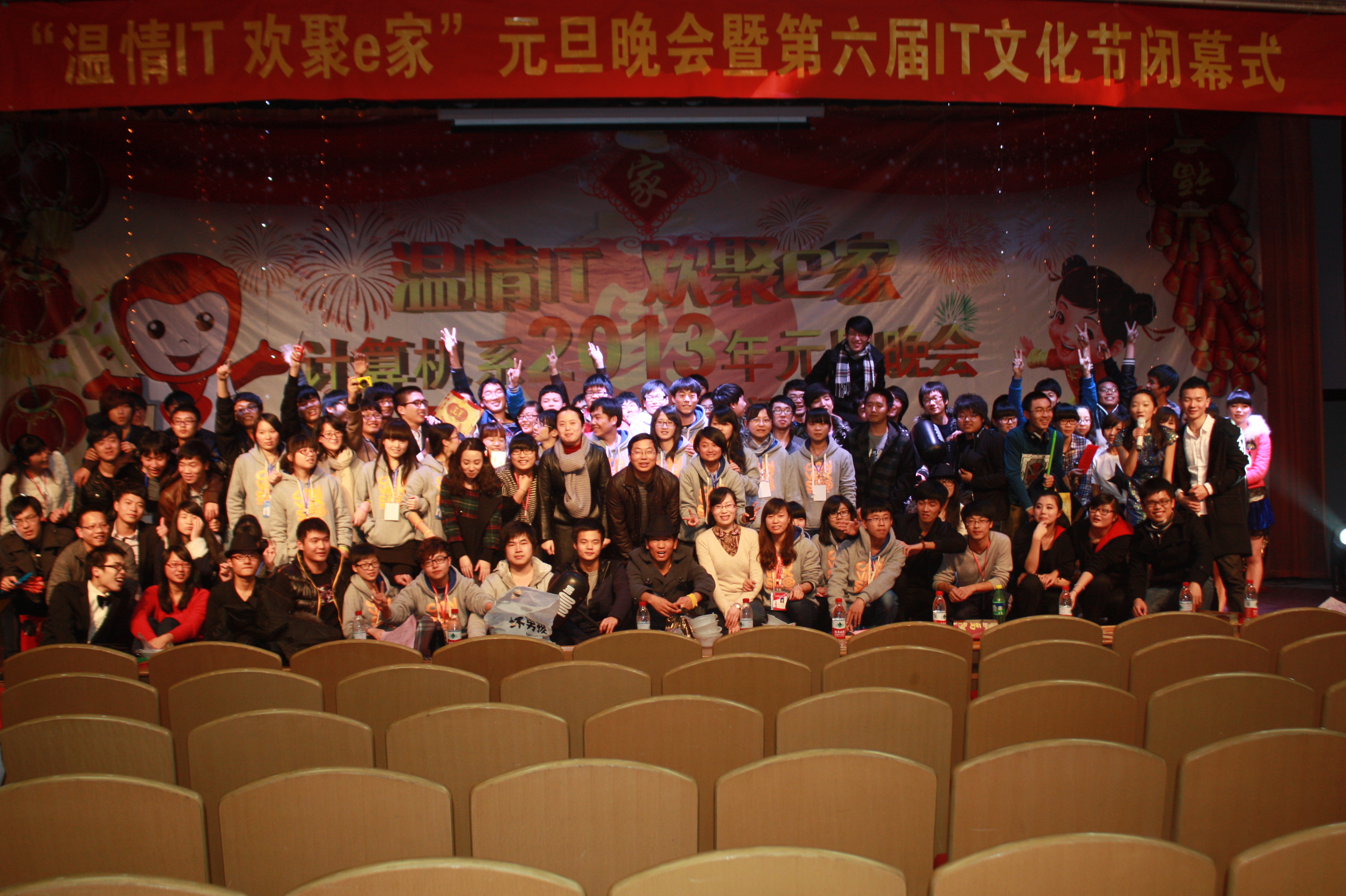时光飞逝,新的一年又将到来。12月21日晚,计算机系“温情IT,欢聚e家”2013年元旦晚会在报告厅隆重举行。系党总支书记童炳金老师、系主任田启明老师,财会系张磊老师,人文系谢高超老师,系辅导员罗小阳老师、李文静老师、徐莎老师、黄立强老师参加了本次晚会。