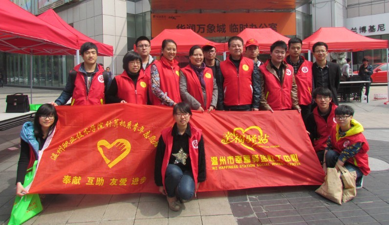 3月18日,计算机系“幸福驿站”志愿者参加了温州市民政局、温州市社工局在市区车站大道举办的首届“社工节”活动。