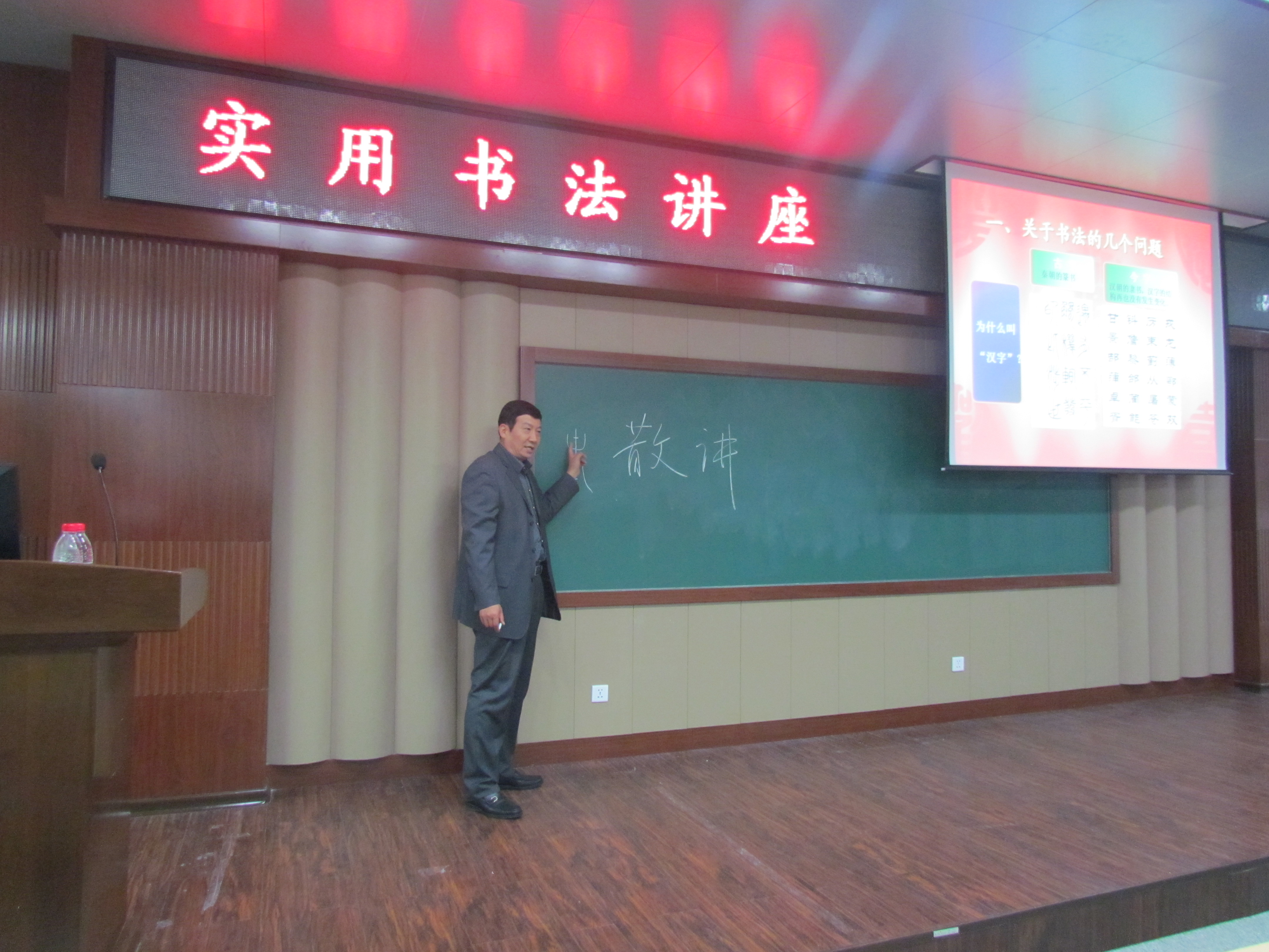 随着科技的不断发展,信息工具的不断完善,同学们对汉字文化都慢慢的淡忘了,但在许多交际场合中华汉字文化对记事和交流感情显得尤为重要。讲座中,田老师为同学们讲解了博大精深的中华汉字文化,用一个个小故事和有趣的提问来激发同学们练好书法的兴趣,同时,田老师还由书法扩充到人生,语重心长的教导同学做人做事的道理。