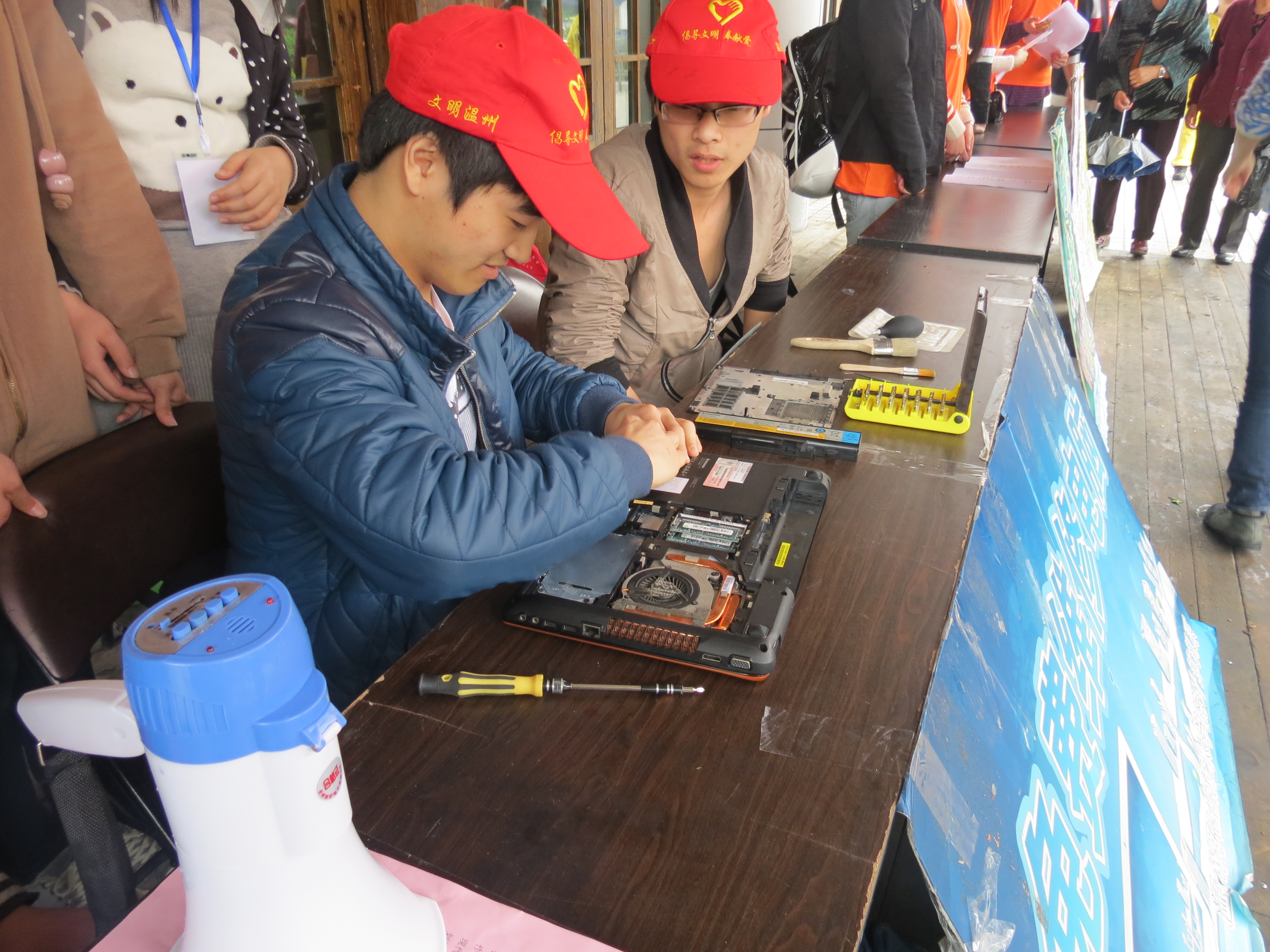 3月20日,我系志愿者来到了清风社区,进行清风社区免费电脑维修的志愿活动。志愿者们都本着为社会服务,认真练习操作技巧的心态来到清风社区。他们分工合作,耐心地向前来咨询的群众讲解电脑维修与电脑常识,开展电脑检测、安装系统、清理电脑灰尘及杂物、系统修护等服务,对不能搬来的台式机都热情的上门服务。天公虽不作美,下着小雨,但我系志愿者的热情不灭。半天下来,共修理了十余台电脑。志愿者们的工作得到了清风社区居民的一致好评。