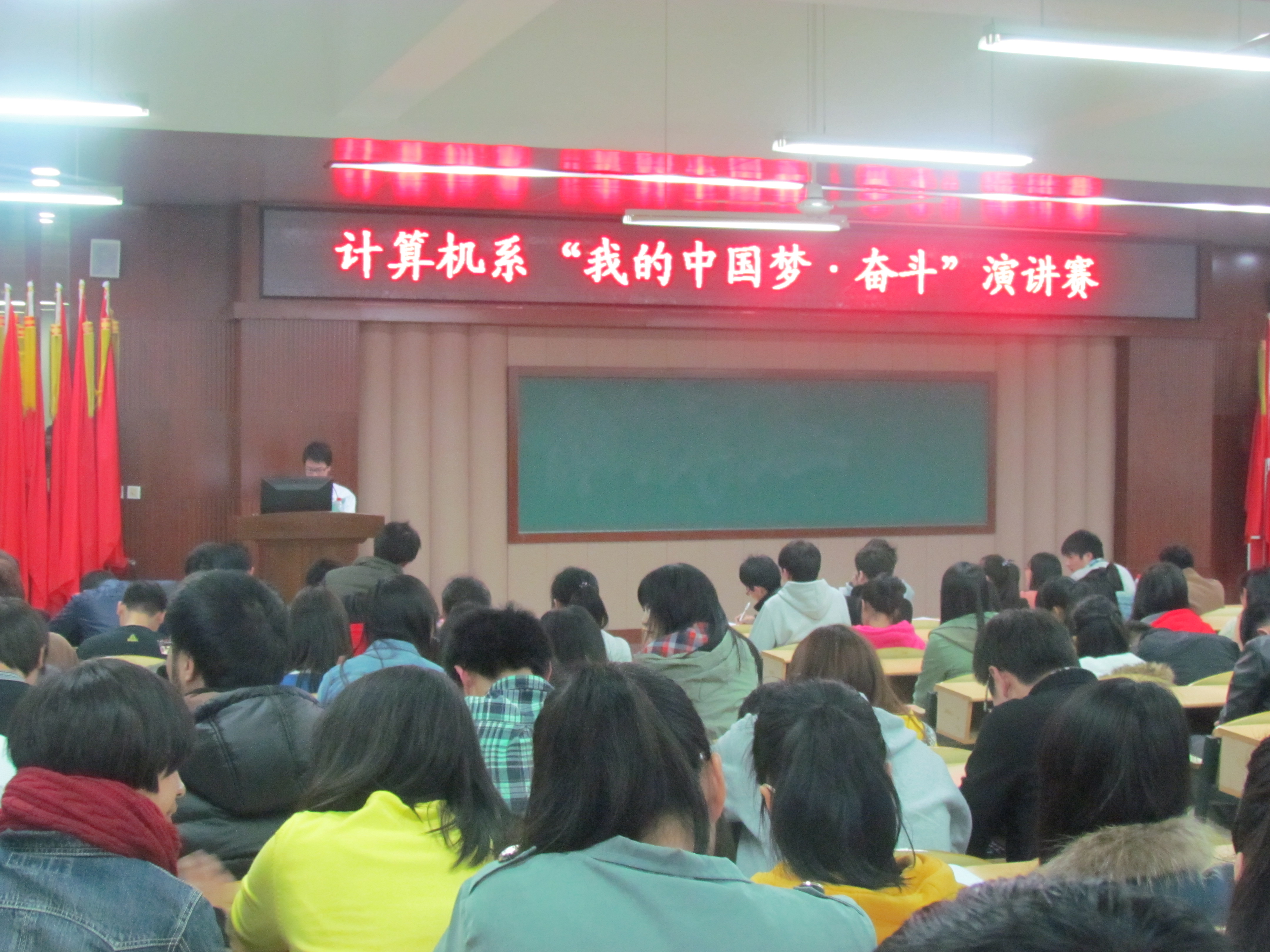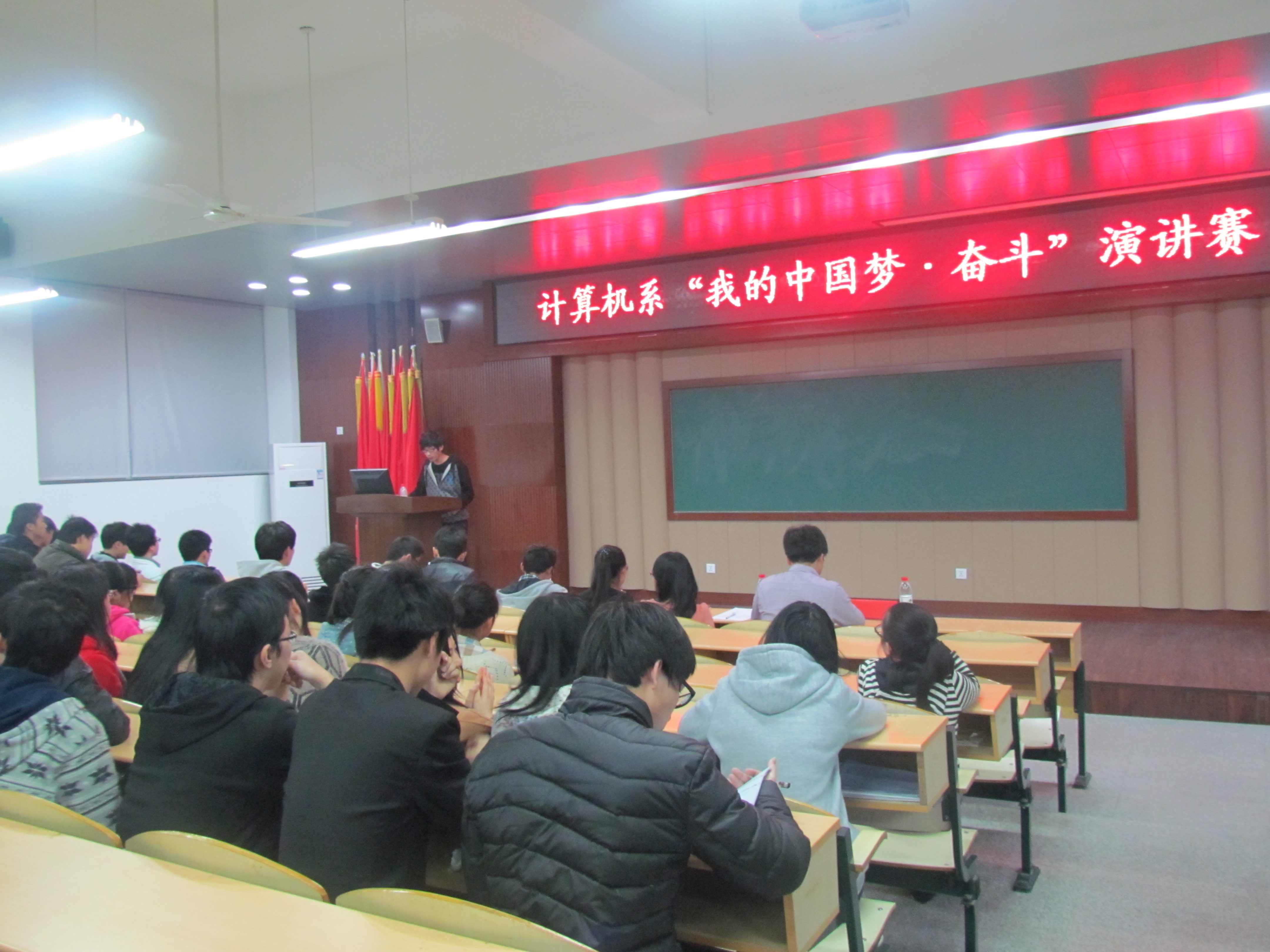为更好的理解和阐释“中国梦”的内涵,提升同学们的口才能力,3月27日晚在2-101计算机系举办了以“我的中国梦•奋斗”为主题的演讲比赛。