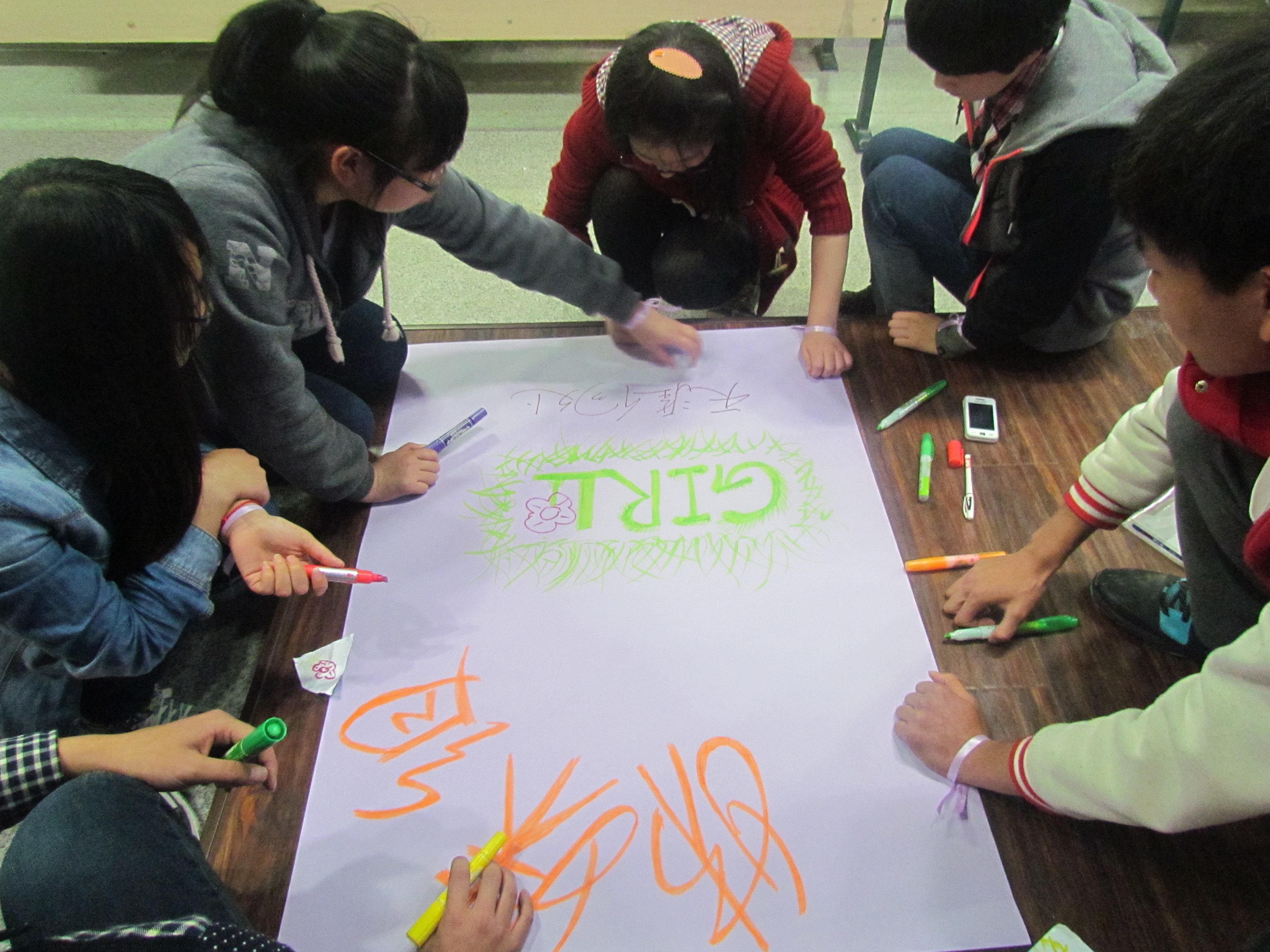 此次活动主要以团队游戏比赛为主,活动现场,各部门干事分开组队,通力合作,一边享受着活动的乐趣,一边畅谈生活、学习上的点滴和交换工作上的心得体会,气氛非常热烈,尤其是 “描绘青春”环节,同组六人在三十分钟之内共同来完成一张即兴海报,并发挥各组成员丰富的想象空间和语言组织能力。欢乐的游戏氛围不仅让干事们体会到游戏的乐趣,更让他们加深了干事之间的交流与合作。