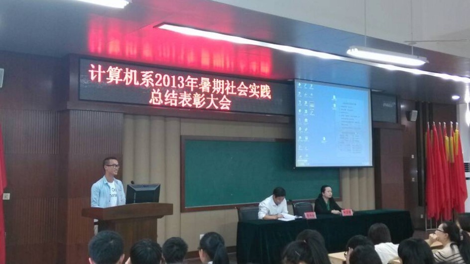10月23日下午,“计算机系2013年暑期社会实践总结表彰大会”在我系101教室隆重举行,系党总支书记童炳金、系主任田启明出席了此次大会,本次大会由我系党总支书记童炳金主持。