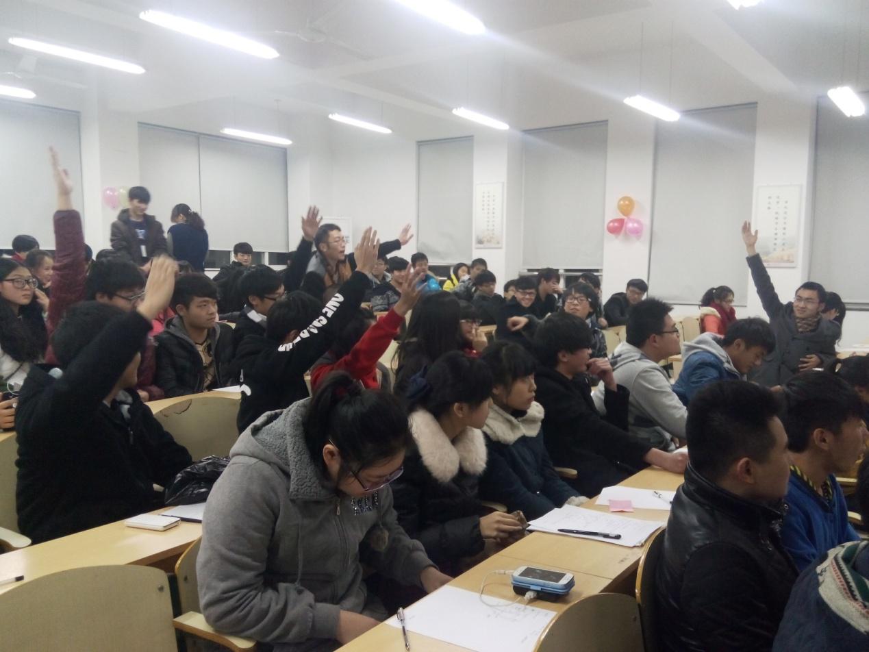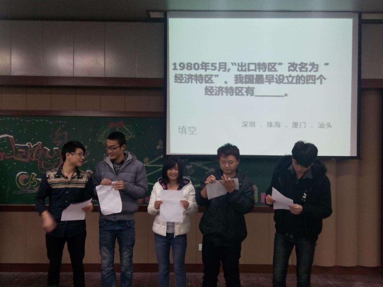 据悉,参与本次活动的有大一、大二的各班代表队。活动分为四个环节进行,第一个环节为抢答题:首先由组织者播放有关党史的影片,随后同学们积极举手踊跃答题。第二个环节为风险题:各班队伍选出一位代表上台选择两题进行答题,可能是多选题,又或者是判断题。第三个为游戏环节:每组队伍前共有八个气球,气球里写着相应的免答题纸条或者是答题纸条,其免答题概率为1/8。随后便公布一、二、三等奖奖次。第四个为抽奖环节:由现场嘉宾从签到人员的纸盒箱里随机抽选两名幸运同学。我们沉浸于激情似火的竞答中,不知不觉活动便结束了。