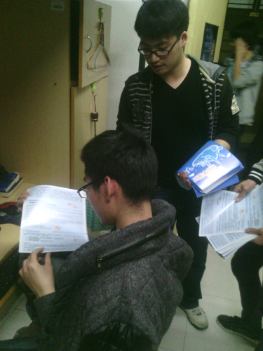 信息技术系党员服务中心心理帮扶组的同学们利用晚上的休息时间挨个走访寝室,发放心理宣传单,并与毕业班的学长们交流他们在就业过程中遇到的一些问题。