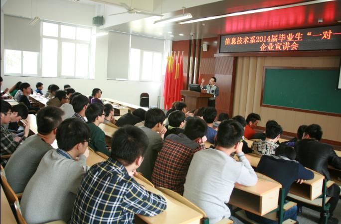 3月26日下午,由信息技术系网络技术专业教研室、实训科和学工办联合举办的网络技术专业校企合作座谈会暨信息技术系2014届毕业生“一对一”宣讲会在好学楼举行。中国联通鹿城分公司、浙江省邮电工程建设有限公司等9家企业、党总支书记童炳金、网络技术专业全体教师和2014届毕业生等参加了本次活动。