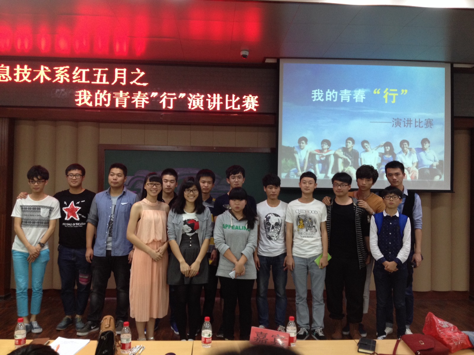 为丰富当代大学生的课余生活,搭建一个展示自我、超越自我的平台,自觉树立当代大学生的良好风范和形象,在全校范围营造一种良好的自律与自我教育的整体氛围和风气,引导和激励大学生奋发有为,我系于5月19日下午18:00在好学楼101室举办“我的青春‘行’”——演讲比赛,我系大一全体同学到场参加此次活动。