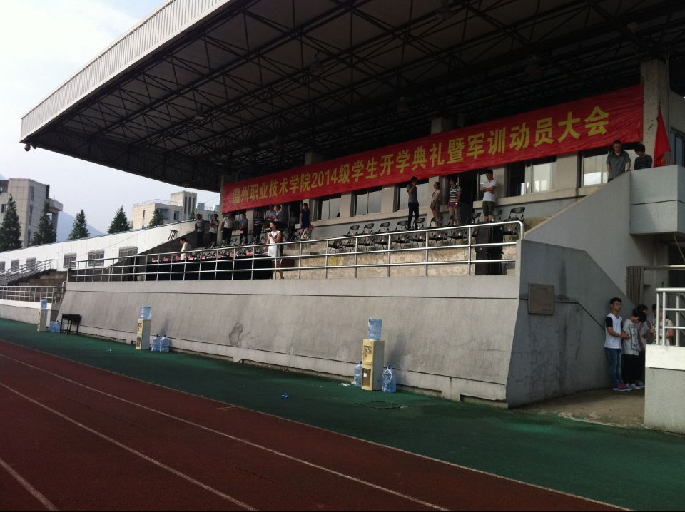 为锻炼学生意志,培养纪律性人才。于9月12日上午,温州职业技术学院2014级学生开学典礼暨军训动员大会在田径操场举行,本次大会由副院长王向红主持,学院党政领导班子、温州军分区领导、各系部处室负责人、辅导员以及2014级全体新生出席参加了本次大会。