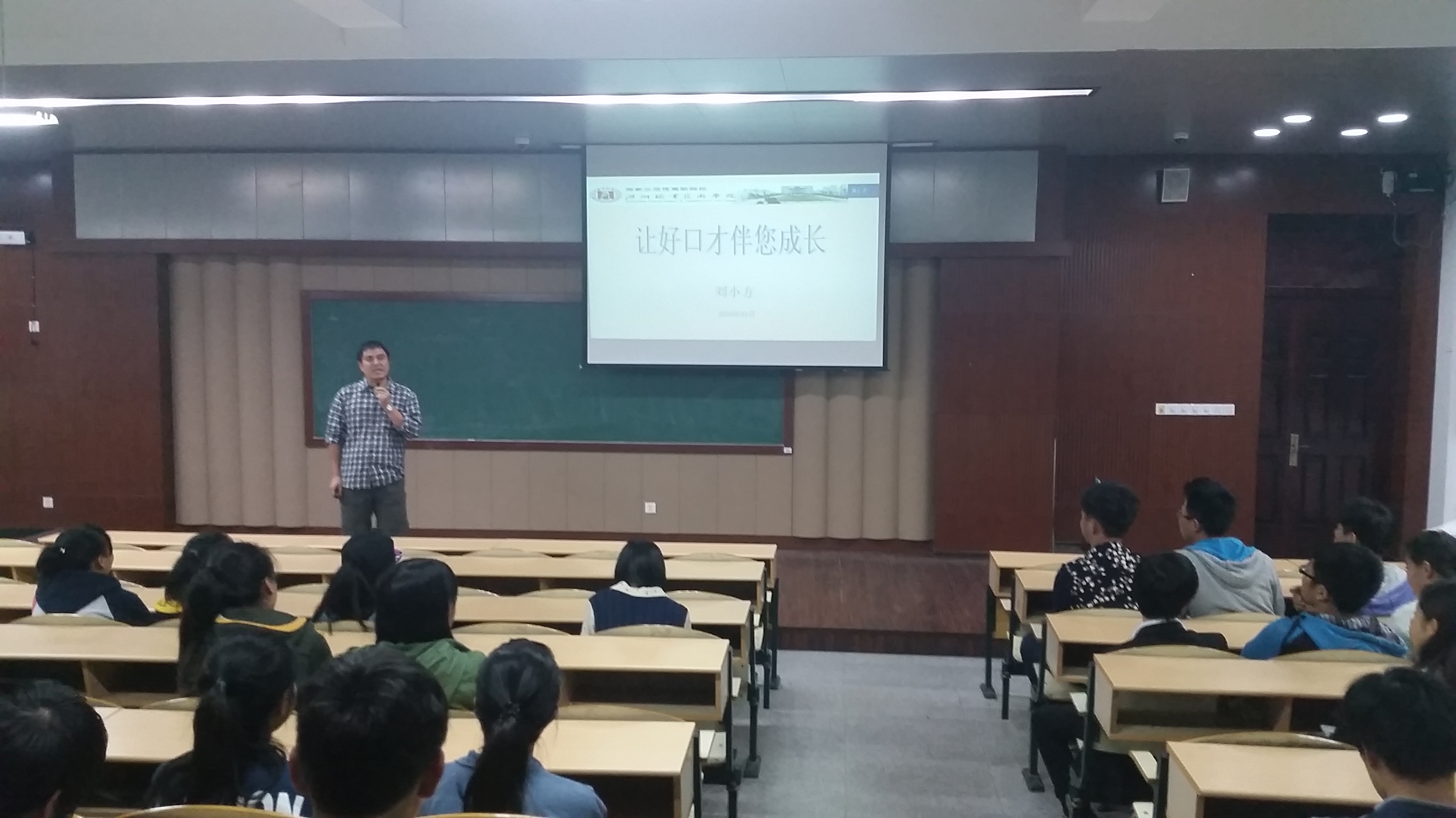 为培养同学们“讲话”的兴趣和自信,练就一副好口才,我系于11月12日晚18:30在好学楼201教室举办了以“让好口才伴您成长”主题讲座。本次讲座邀请到了工商管理系刘小方老师,共有170多位学生参与了本次讲座。