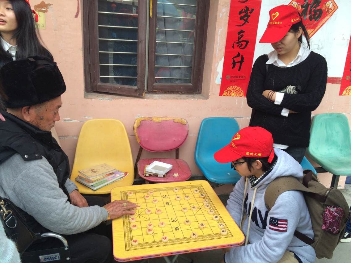 虽然天空下着绵绵细雨,但志愿之行挡不住我们行进之路,走进敬老院大门,工作人员热情的欢迎我们。细心的同学们为老人们分发精心准备的的水果。在整个志愿活动开展期间,志愿者们有的到各个房间。陪老人们拉家常、讲笑话,给老人们带去欢笑和快乐;有的帮助老人打扫卫生、捶捶背,使老人变得轻松;有的陪老人去户外散散步,下下棋,听老人讲讲过去和现在。看到老人们灿烂的笑容, 听到老人们爽朗的笑声, 志愿者们充分体会到了本次志愿活动的意义所在。