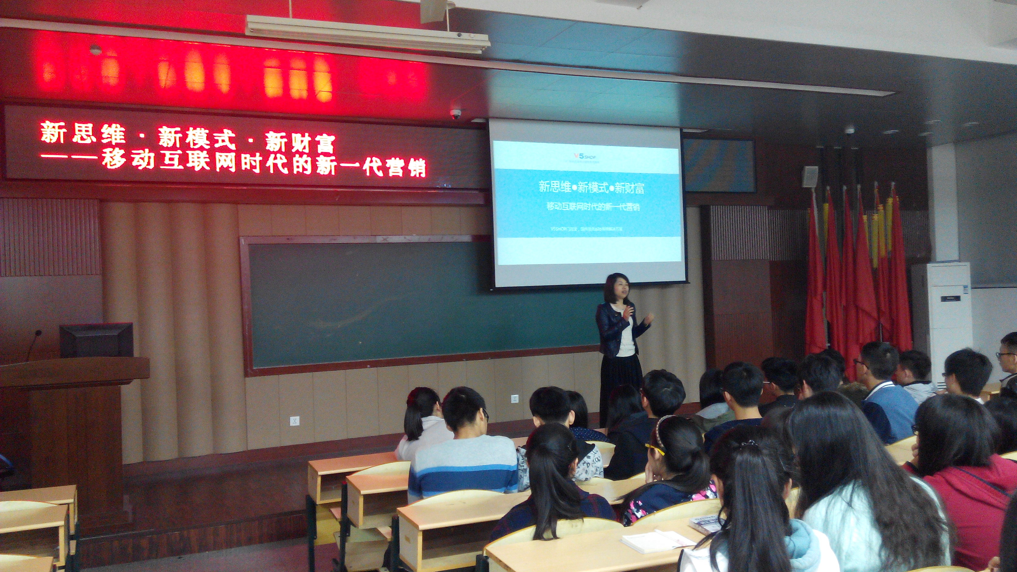 为提高大学生的营销意识,提前适应社会发展,4月8日晚上,我系在好学楼101开设了格致大讲坛第二十讲:新思维·新模式·新财富——移动互联网的新一代营销,本次讲座有幸邀请到系办公室主任、副教授吴淑英老师,各年级电子商务专业的学生聆听了此次讲座。
