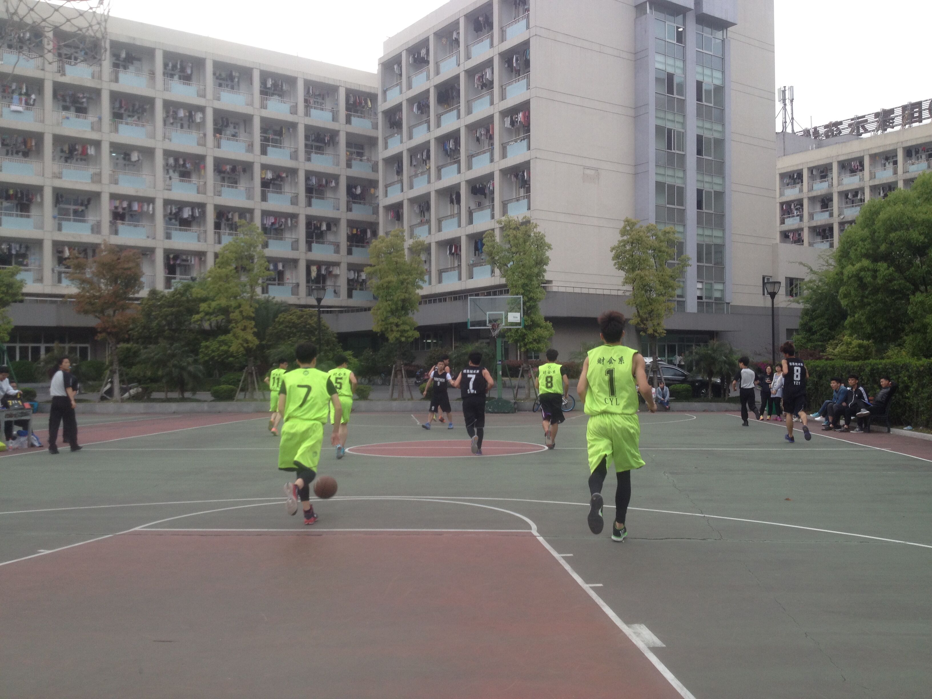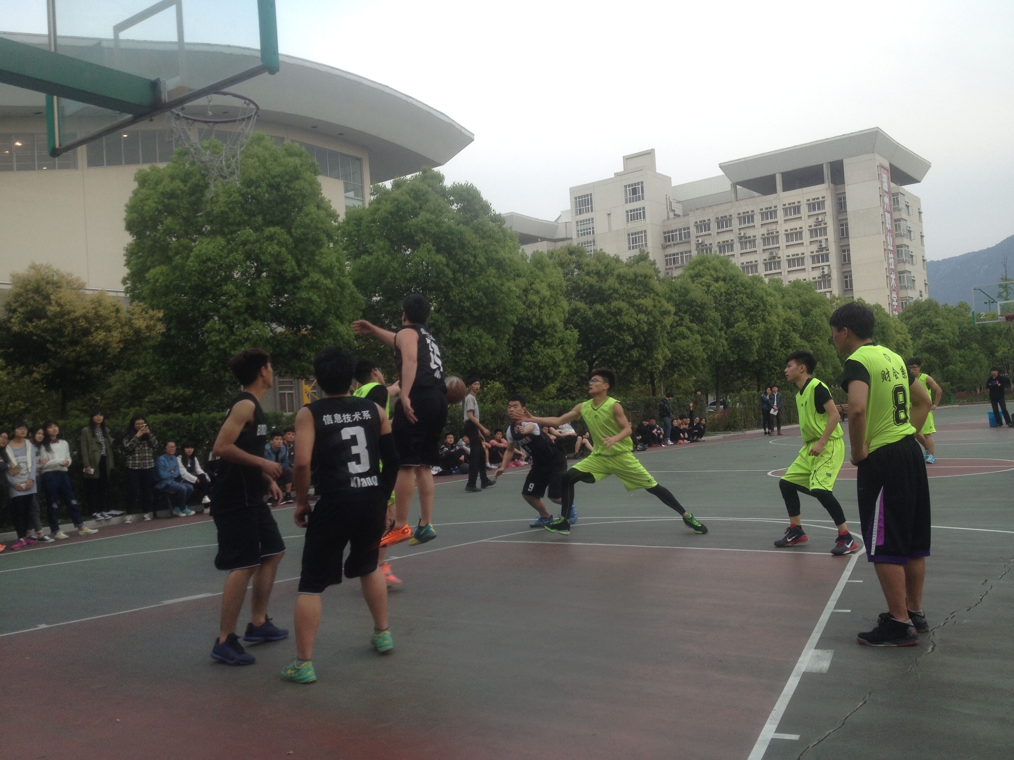 为加强各系之间的凝聚力,增进同学们友谊,提高身体素质,4月13日下午4:30,我院篮球赛小组循环赛在篮球场举行,此次对战队伍信息技术系对财会系的系篮球队比赛。