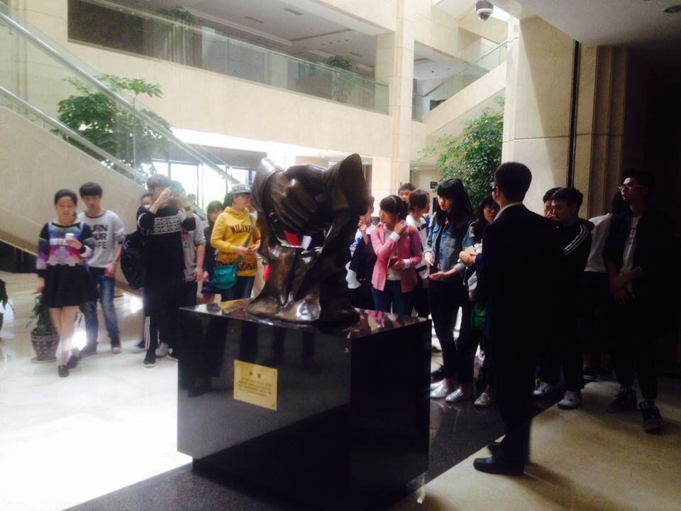 在法院工作人员的带领下,同学们先后参观了大厅、历史文化走廊、审判庭以及公平女神像。历史文化长廊凝聚了人文关怀理念,既有文化石,又有古今法治典范和成就简介,还有格言警句、法院内设机构及职能、诉讼须知等内容。同学们还参观了庄严的审判庭,对法官这份职业的敬畏油然而生。最吸引同学目光的是法院里的大幅浮雕,熠熠生辉,巧夺天工,象征着公平正义。
