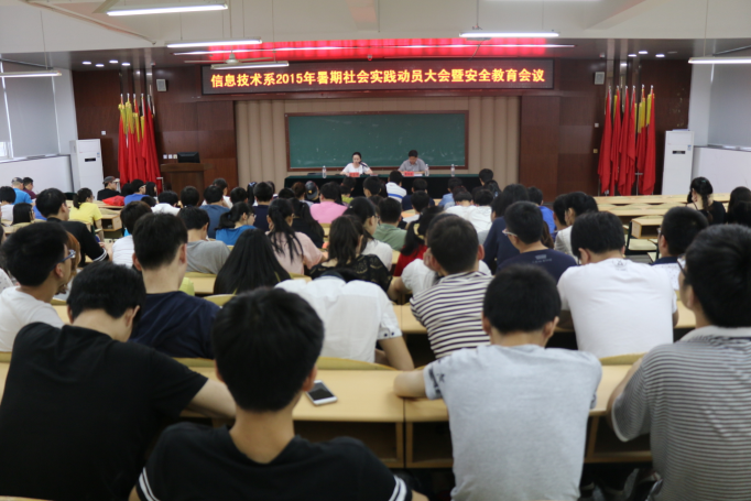 为充分调动同学们参与暑期社会实践的积极性,6月3日号下午,我系在好学楼101教室召开2015年暑期社会实践动员大会暨安全教育会议。出席本次大会的有:系主任田启明、系书记童炳金。会议由系学工办主任罗小阳老师主持。