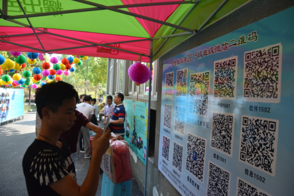 我院院长谢志远教授来我系了解报道情况,院领导的关心慰问无疑给新生志愿者们和教师的工作干劲注入能量。据悉,为做好迎新工作,我系推出了微信扫描创意,扫一扫加入班级群,关注温职院和我系官方微信。