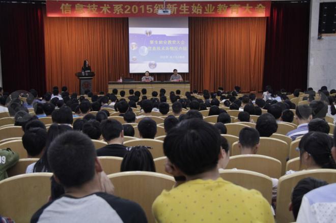 为使大一新生更快地了解和适应大学生活,9月21日上午,信息技术系2015级新生始业教育大会在树人堂隆重举行。系党总支书记童炳金,系主任田启明、系信维专业负责人杜益红、系辅导员以及2015级全体新生,本次大会由系副主任张燕姑主持。