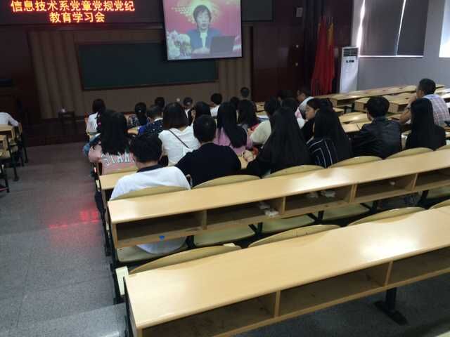 10月14日下午,信息技术系根据中共温州职业技术学院委员会组织部的相关文件,在好学楼101开展了党章党规教育学习会。参加本次学习会的有信息技术系全体党员及预备党员。