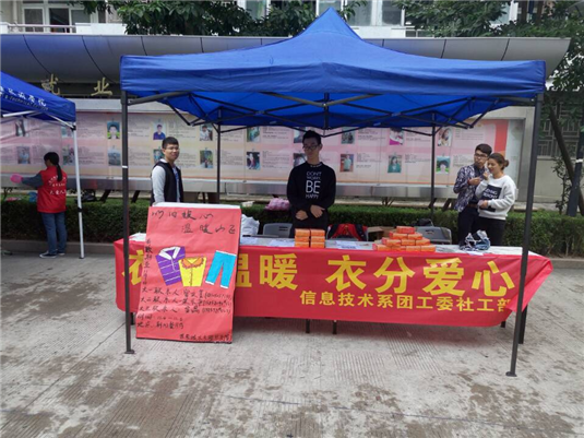 为了让孩子们感受温暖,让他们度过一个温暖的冬天。11月4日至11月6日,我系社工部志愿者们在朝阳餐厅前展开爱心收衣活动,此次收衣活动共持续3天。