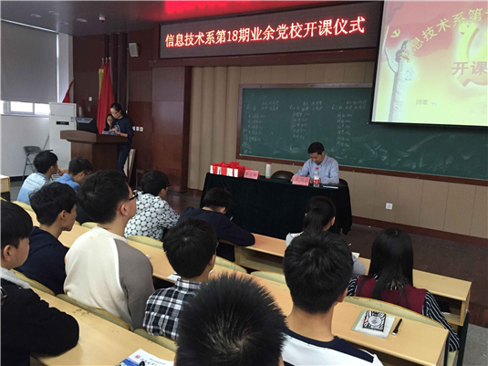 11月10日中午,我系第十八期业余党校开课仪式在在101教室拉开序幕,系党总支部书记童炳金老师和辅导员李文静老师参加了此次开课仪式,仪式由李文静老师主持。
