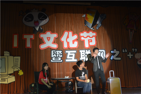 开幕式以一段活力四射的街舞表演开场。随后,童炳金书记致辞,他强调IT文化节是广大同学学技术、练技能的平台,也是同学们展示学习成果的舞台,此次IT文化节暨互联网之“+”活动内容丰富,鼓励同学们积极报名参加。紧接着由各专业带来的精彩节目赢得了台下同学们的阵阵掌声,多媒体专业带来的《拼画》、电子商务专业带来的花式篮球、街舞社带来的舞蹈《dance box》、文艺部带来的小品《伪男人》等等。