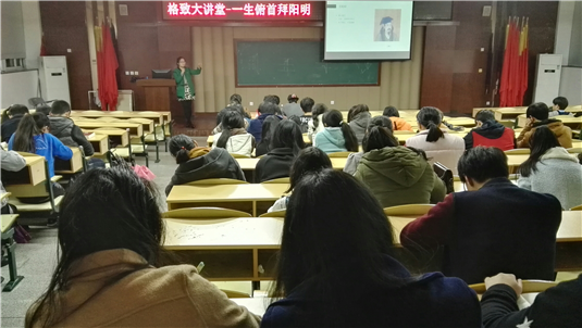 12月9日晚,信息技术系在好学楼101教师开设以“一生俯首拜阳明”为主题的讲座,讲座邀请到多媒体教研室高和蓓老师,我系150余名学生参与了此次活动。