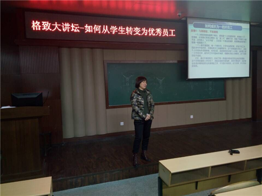 为提高学生对优秀员工的认识,提前感受就业压力,为日后成功就业打好基础,12月16日,我系在101教室开展了“如何从学生转变为优秀员工”专题讲座,本次讲座邀请了信维教研室杜益虹老师。