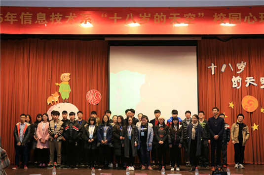 12月21日晚,信息技术系在树人堂举办了第四届“十八岁的天空”心理情景剧比赛。本次比赛邀请了院心理指导老师陈冬瑞老师、信息技术系副主任张燕姑老师、信息技术系学工办主任罗小阳老师、李文静老师、李小琦老师、董乃阜老师作为此次心理情景剧比赛的评委。