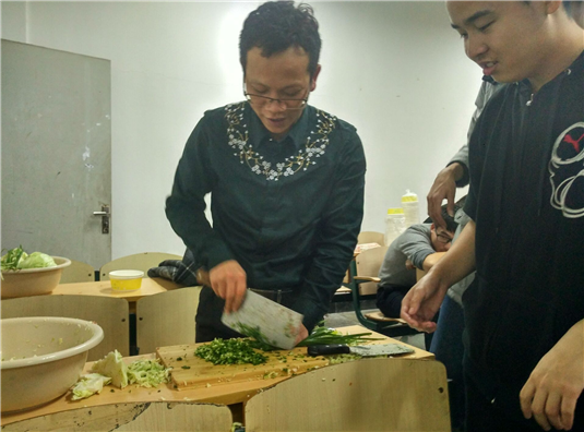 据悉,从中午12点开始同学们就开始忙碌起来,按照活动安排,公寓管理部的同学们齐聚好学楼103教室,开始活动的前期准备工作。根据活动进行分工,一组洗菜、一组切菜、一组准备肉馅、一组做后勤工作,大家分工井然有序。待到下午2点,包饺子活动正式开始,同学和老师们陆续来到现场,亲自包饺子,下锅、品尝自己亲手做的食物,每位参与人员脸上都洋溢着幸福的喜悦。活动一直持续到晚上5点,期间也有不少同学陆续来到现场,现场气氛浓厚。