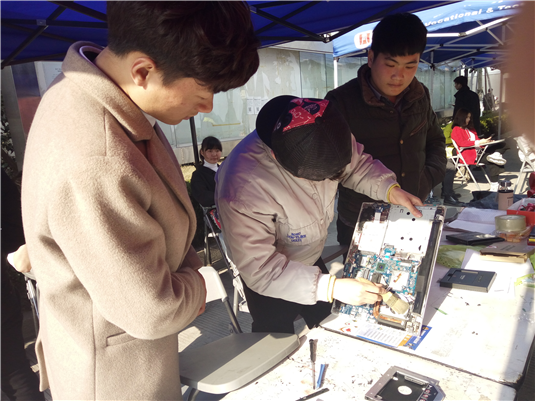 据悉,信息技术系党员服务中心设有五个小组,包括办公室、行为帮扶组、助学帮困组、心理帮扶组和专业服务组。此次电脑免费维修活动由专业组负责,活动开展前,同学们早早来到现场搭建帐篷,布置场地。维修现场遇到最多的问题是电脑运行慢、散热难等,同学们在为电脑处理故障的同时,还耐心为他校同学讲解电脑使用中常见问题及注意事项,提醒同学们:要定期对电脑进行清理和维护,电脑使用时间不应过长,否则易使电脑过热,而损坏硬件。